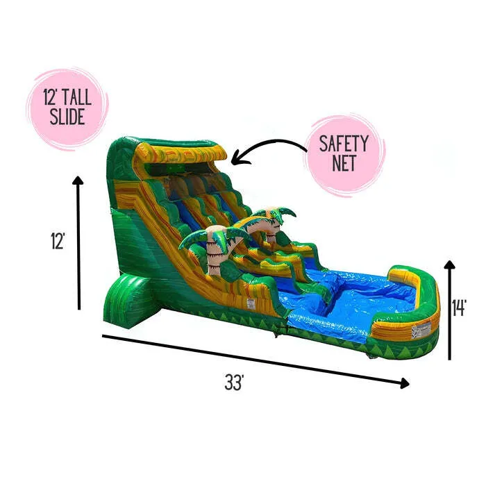 Add tropical flair and high-energy fun to any event with this 18' Tropical Dual Water Slide. Two racing lanes, easy-climb steps, and a splash pool deliver safe, photo-ready excitement for backyard parties, corporate events, and community gatherings.